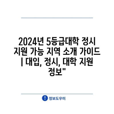2024년 5등급대학 정시 지원 가능 지역 소개 가이드 | 대입, 정시, 대학 지원 정보”