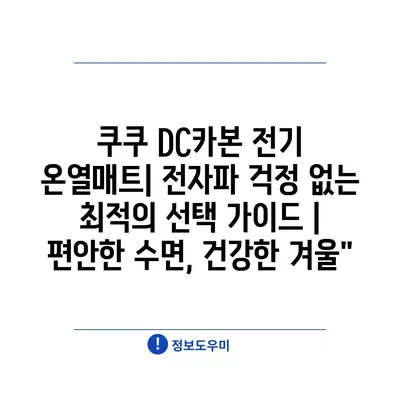 쿠쿠 DC카본 전기 온열매트| 전자파 걱정 없는 최적의 선택 가이드 | 편안한 수면, 건강한 겨울”
