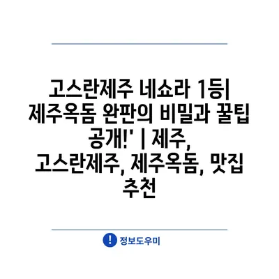고스란제주 네쇼라 1등| 제주옥돔 완판의 비밀과 꿀팁 공개!’ | 제주, 고스란제주, 제주옥돔, 맛집 추천