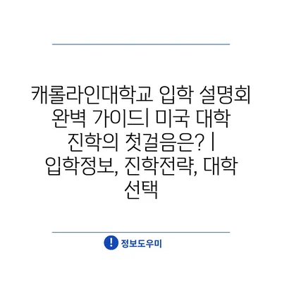 캐롤라인대학교 입학 설명회 완벽 가이드| 미국 대학 진학의 첫걸음은? | 입학정보, 진학전략, 대학 선택