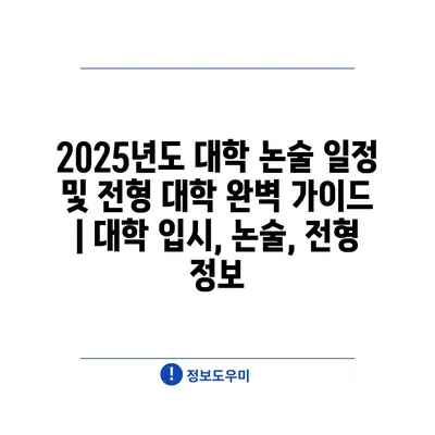 2025년도 대학 논술 일정 및 전형 대학 완벽 가이드 | 대학 입시, 논술, 전형 정보