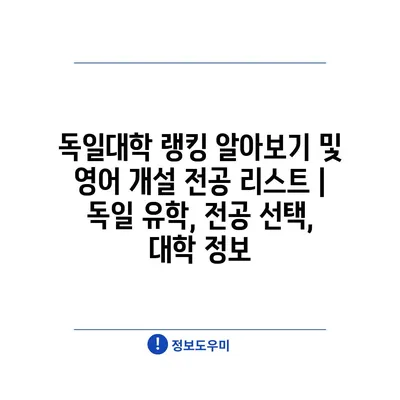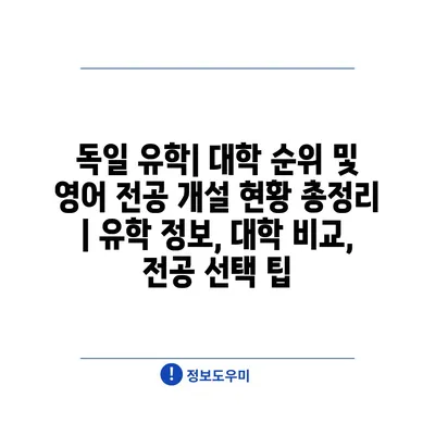 독일 유학| 대학 순위 및 영어 전공 개설 현황 총정리 | 유학 정보, 대학 비교, 전공 선택 팁
