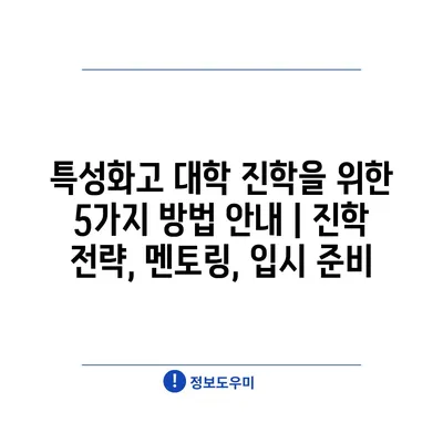 특성화고 대학 진학을 위한 5가지 방법 안내 | 진학 전략, 멘토링, 입시 준비