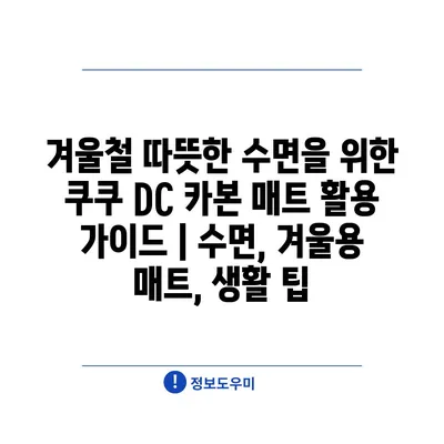 겨울철 따뜻한 수면을 위한 쿠쿠 DC 카본 매트 활용 가이드 | 수면, 겨울용 매트, 생활 팁