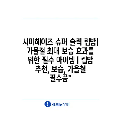 시미헤이즈 슈퍼 슬릭 립밤| 가을철 최대 보습 효과를 위한 필수 아이템 | 립밤 추천, 보습, 가을철 필수품”
